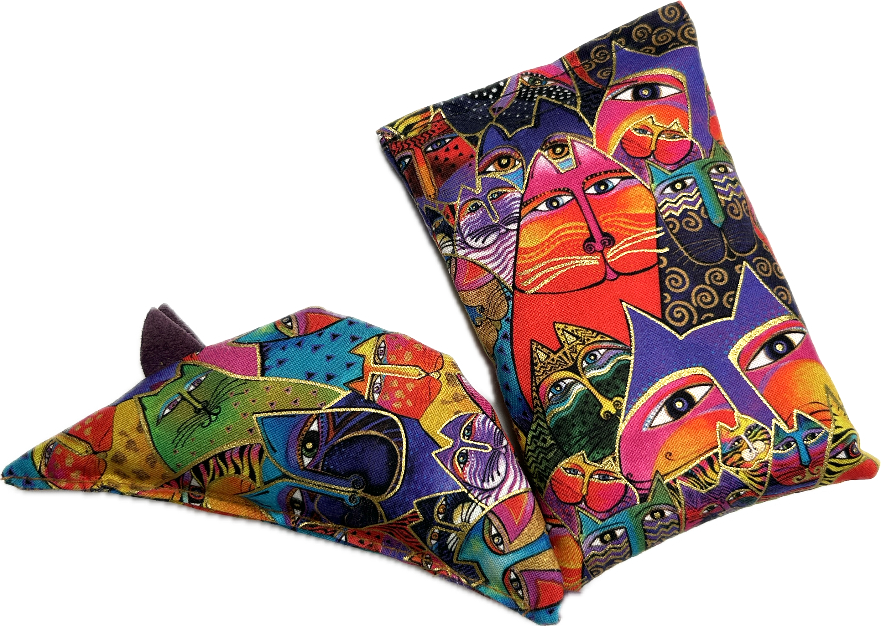 We also have coordinating catnip toys to match most of the tent and mat fabrics.  Some of the fabrics have patterns too large to use for the catnip mice and pillows.